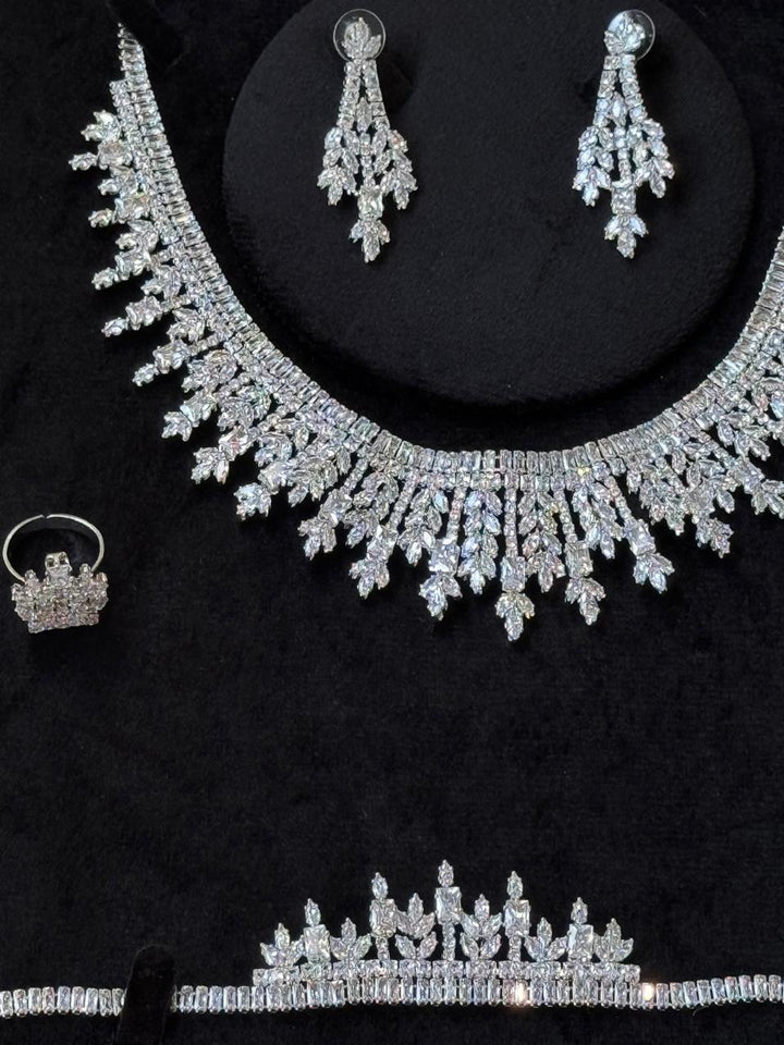 طقم 104 زركون لون فضي 4 قطع مع علبة فخمة . اشتري طقم واستلمي طقم هدية