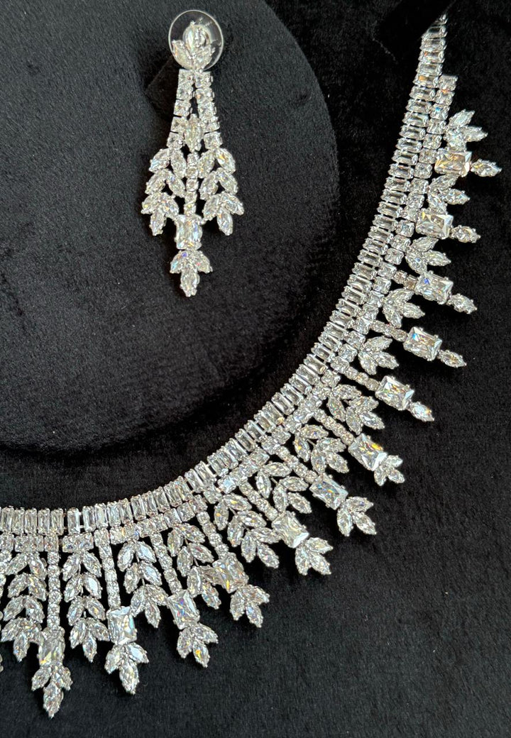 طقم زركون لون فضي 4 قطع مع علبة فخمة