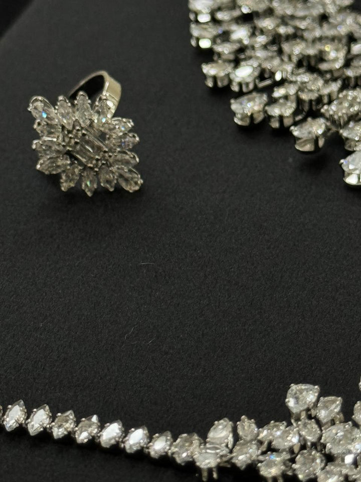 طقم 106 زركون لون فضي 4 قطع مع علبة فخمة . اشتري طقم واستلمي طقم هدية