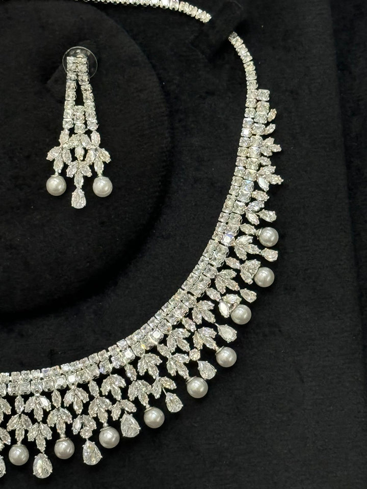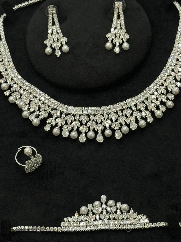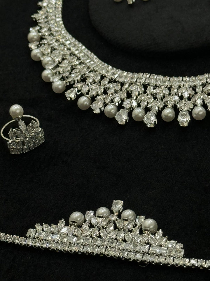 طقم زركون لون فضي 4 قطع مع علبة فخمة