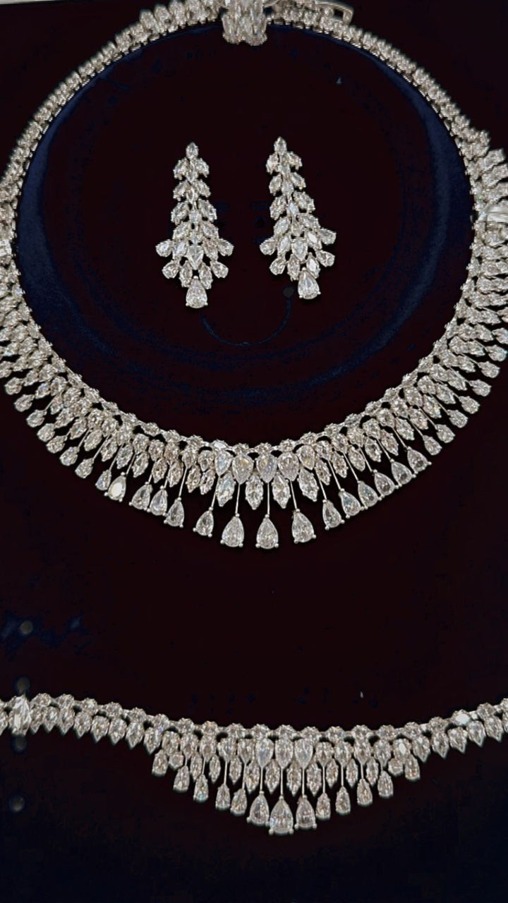 طقم 110 زركون لون فضي 4 قطع مع علبة فخمة . اشتري طقم واستلمي طقم هدية
