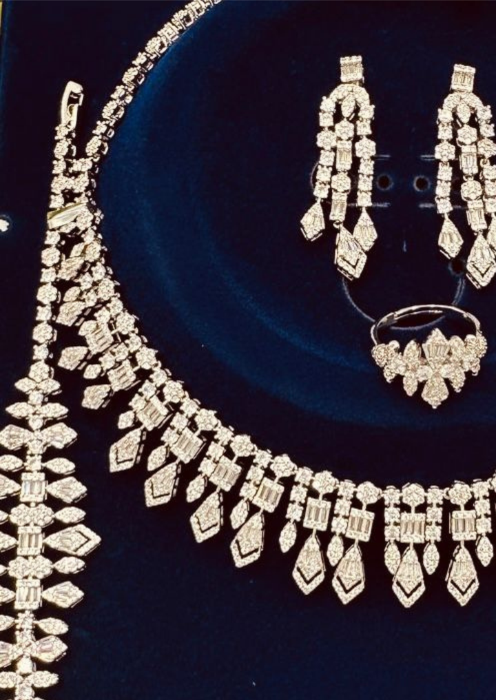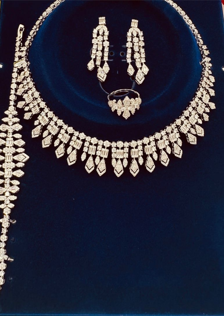 طقم 111 زركون لون فضي ليميتيد اديشن 4 قطع مع علبة فخمة . اشتري طقم واستلمي طقم هدية
